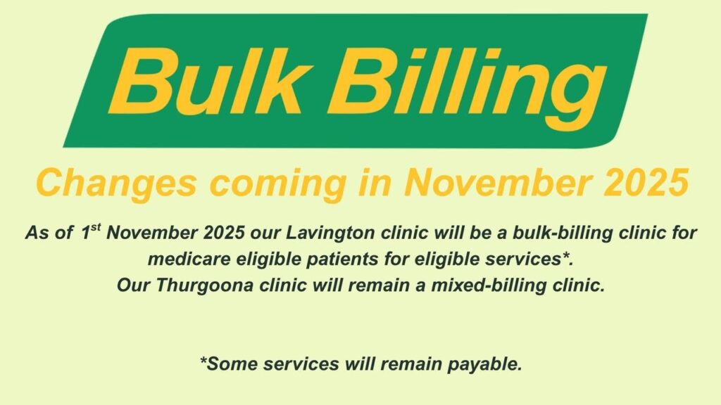 From November 1 you might see media stories about GP’s “returning to bulk billing”. We would like to be open and honest that this will not apply to “The Doctors at Lavington” just yet. Over the last 6 months we have been overwhelmed with restrictions after restrictions that would need to be put in place to fulfill the government’s rules and regulations to qualify for the financial incentive they pay to each practice for universal bulk billing. In theory this sounds easy, in practice it ends up with our clinic facing higher costs that will compromise how we work with you: • shorter appointments and more frequent appointments to cover costs we no longer can charge for (iron infusions, dressings for example) • less time to listen and explain • rushed care instead of comprehensive care We value our patients dearly and are committed to offering the best medical service we can while also understanding the financial restraints of everyday life. Hence, we will continue to bulk bill all pension/health care card holders as well as children under 16. It will be up to the discretion of each doctor whether previously privately billed patients from now on can receive mixed billing, i.e. pay full cost for the first visit but be bulk billed for follow-up or short appointments (referral/script). We are continuing to explore all our options to continue running our clinic safely and holistically as part of the universal bulk billing scheme. We will keep you updated. Please support us in the future by continuing to lobby for cheaper patient costs directly with your local members. The best way to do that would be to raise the Medicare rebate. Thank you very much for continuing your care with us and valuing the difference that time, care and experience can make.